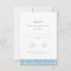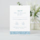 This simple but chic RSVP card features elegant blue type and a tile pattern perfect for a destination wedding - especially a Greek wedding! With tiles in shades of Grecian blue, it evokes feelings of an island but also works well for other tropical destination weddings. This simple RSVP card can be customized with your own "yes" or "no" wording along with menu selection and room for guests to write all the names of those attending. This design coordinates perfectly with the Lea Delaveris Design Tile Frame Greek Blue destination wedding collection.