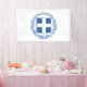 This design features the coat of arms of Greece (officially known as the Hellenic Republic), which is a country located in Southeast Europe. The capital city of Greece is Athens, which is also the country's largest city, followed by Thessaloniki. Other major cities in Greece include Patras, Piraeus, Larissa, Heraklion, Peristeri, Kallithea, Acharnes, Kalamaria, Nikaia, Glyfada, Volos, Ilio, Ilioupoli, Keratsini, Evosmos, Chalandri, Nea Smyrni, Marousi, Agios Dimitrios, Zografou, Egaleo, Nea Ionia, Ioannina, Palaio Faliro, Korydallos, Trikala, Vyronas, Agia Paraskevi, Galatsi, Agrinio, Chalcis, Petroupoli, Serres, Alexandroupoli, Xanthi, Katerini, Kalamata and Kavala. The coat of arms comprises a white Greek cross on a blue escutcheon (a technical term for a heraldic shield), all surrounded by two laurel branches.