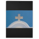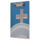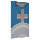 A cross on a white church against blue sky. The image was taken on the Island of Naxos, Greece,