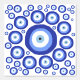 An abstract pattern of the Greek good luck symbol of the eye. This symbol is also tied in with many other cultures and traditions. The different blue tones contrast against the white background creating a Greek island Summer feel. Perfect gift for anyone who loves mystical abstract illustrations. Ideal for a birthday gift, nursery decor, kids room art, home decor, Christmas present or gift for any other special occasion.