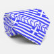 The blue and white Greek Flag tiled diagonally. Each flag on the tie has the word "GREECE" below the flag in blue letters.