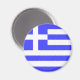 The flag of Greece shows on a round magnet here in nine blue and white alternating stripes. To represent Eastern Orthodox Christianity, there is a cross in the upper right side (hoist side). A perfect way to share your love of all things Greek on Oxi Day or anytime. The image here takes up the entire design space, using a bit of artistic license to make the flag look its best on each item. The flag was officially adopted as a symbol of Greece on January 13, 1822 at the First National Assembly at Epidaurus. Traditional legends say the stripes represent the number of syllables (nine) in the Greek words for FREEDOM OR DEATH. Others say they represent the letters in the Greek word for FREEDOM. Others suggest that each stripe represents one of the nine Muses of mythology. The blue and white colours are suggested to represent the colours of the Greek sea and sky. Either way, it makes for a beautiful flag that will always look nice anywhere you take it.