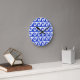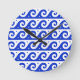 Greek Fret, Mediterranean Wave Pattern, Blue Round Clock