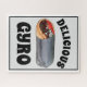 Design features an original illustration of a foil-wrapped Greek gyro sandwich, consisting of meat, vegetables, and tzatziki sauce, wrapped in pita bread and topped with feta cheese and tomatoes. A staple of the cuisine in Greece and the Mediterranean, and a popular street food in many parts of the world.