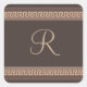 Meander Elegant, classical Greek key border ornament design with monogram and geometrical stripes decoration on dark brown background. Great gift idea for Birthdays, Christmas or just to surprise your loved one. It's easy to personalize it and change the background colour to add different one to the design with your choice.