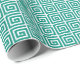 Rich teal green, trompe l'oeil 3-d effect Greek key pattern - the look of white raised enamel on a solid teal background