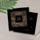 Greek Key Meander Monogram Gold on Black Square Business Card