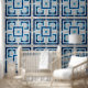 Greek Key Mosaic - Blue Marble and Pearl Wallpaper