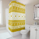 Creating a stylish shower curtain, this is a meander line composition, showcasing white shapes against a relatively gold-toned contrast canvas background.