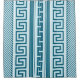 This image creates a nice shower curtain by displaying conventional vintage teal and white line shapes over a comparatively contrasted canvas background.
