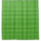 Shower curtain in a classic Greek Key pattern in deep emerald green on a light lime green background