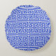 Greek Meander Key Square H Pattern Blue Round Pillow