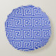 Greek Meander Key Squares Pattern Blue Round Pillow