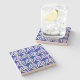 Greek Meander Key Waves Pattern Blue Stone Coaster