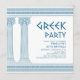 Greek Party birthday invitation featuring minimalist temple pillars and Greek meander pattern in blue. Customizable product for a memorable celebration. Perfect for your Ancient Greece or Ancient Rome-themed weddings, engagements, graduation parties, anniversaries, save the dates, bachelorette and birthday parties.