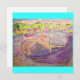 shows colourful greek island fishing village from original watercolour !