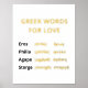 Greek words for love minimal white gold foil print.