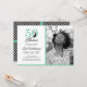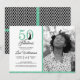 A chic, elegant, 50th birthday photo invitation you can personalize and send out for your fiftieth birthday party celebration. The words "50 and Fabulous" in black and mint green glitter are set using modern typography. Simply add your own photo. There's a black and white geometric diamond pattern on the back of the card with mint green glitter ribbons. If you need any help or matching products, please contact us through our store.
