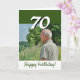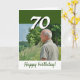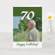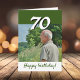 Green 70th Birthday Photo Card. 70th birthday custom greeting card for someone celebrating 70th birthday. Insert your photo into the template. You can also change the age number.