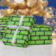 This wrapping paper design features a brick-like pattern with a style inspired by that of vintage 8-bit computer games. It features various shades of green.