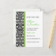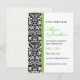 A black-and-white damask wallpaper pattern along with green accents serve to highlight this card. Easily personalized with your name(s), event date and information. Available in alternate colours with matching products.