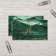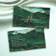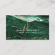 Elegant, stylish business card with green agate and marble with faux gold glitter veins and sparkle accents and fancy calligraphy script monogram initials with swashes. CHANGES: Change any text font style, colour, size and placement or delete/move the contact icons in EDIT. ASSISTANCE: For help with design modification or personalization or if you would like coordinating items, contact the designer BEFORE ORDERING via the Zazzle Chat MESSAGE tab or email makeitaboutyoustore@gmail.com.