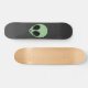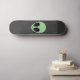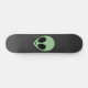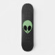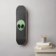 Simple green alien head with big black eyes and a small black mouth on a dark grey background.