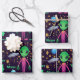 Green Alien UFO Add Name Age Happy Birthday Wrapping Paper Sheets