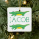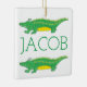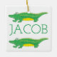 Ornament features an original marker illustration of a green and yellow alligator or crocodile. Just personalize with your information.