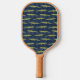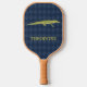 Create a personalized gift that's perfect for someone who loves alligators and other animals. This pickleball paddle has a realistic style illustration of an alligator in an olive green colour set against a navy blue patterned background and is ready to be personalized with a name in matching olive green lettering. The reverse side has a coordinating alligator pattern.
