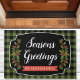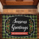 Welcome guests with warmth and holiday cheer using this personalized doormat. The classic black and green buffalo plaid background creates a cozy, rustic feel, while the festive holly accents and elegant "Seasons Greetings" message set a joyful tone. Personalize it with your family name to make it truly your own. This durable doormat is perfect for adding a festive touch to your porch or entryway throughout the holiday season.
