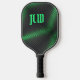 Green and Black Striped Abstract with Initial Pickleball Paddle