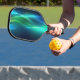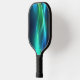 Green and blue glowing wavy lines pickleball paddle