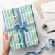 Classic, trendy striped pattern of soothing, blue and green hues.
