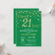 21st Birthday Invitation with Green and Gold Glitter Diamond Background. Gold Confetti. Adult Birthday. Male Men or Women Birthday. For further customization, please click the "Customize it" button and use our design tool to modify this template.