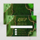 Make a bold and elegant first impression with this green and gold agate marble RSVP card, featuring rich jewel tones, organic stone textures, and shimmering gold accents perfect for fall and winter celebrations. The deep emerald hues paired with metallic gold detailing create a dramatic yet refined look ideal for a wedding RSVP, birthday RSVP, or Sweet Sixteen RSVP with a formal, modern, or glamourous aesthetic. Inspired by natural agate and geode patterns, this luxurious design coordinates beautifully with upscale seasonal events and is fully customizable to match your details, adding timeless sophistication to autumn and winter celebrations alike.