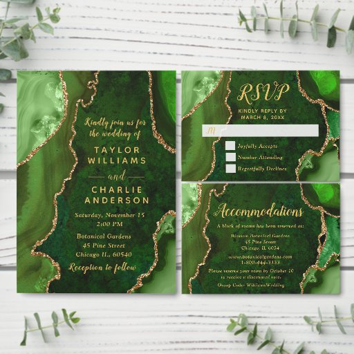 Green and Gold Agate Wedding Program