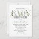 Elegant natural botanical greenery baby shower invitation featuring a stylish white background that can be changed to any colour, beautiful rustic watercolor green foliage, gold glitter accents, and a couples baby shower celebration template that is easy to personalize.
