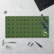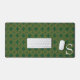 Decorative desk mat done in a green and gold brocade design. Personalize the custom white one letter monogram to suit your needs. Great gift idea for her.