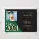 Green and Gold class of 2023 graduation announcement and invitation in black with modern and stylish school colour accent in green. Editable colour slant green design and bold 2023 in gold over a black background with square frame photo cube on the back with room for 4 additional full colour photos.