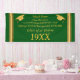 Personalized Green and Gold Class Reunion Banner or Graduation Banner. Type in Your Text into the 3 Text Box Templates by Clicking "abc Personalize this Template". CALL Designer Linda: 239-949-9090 or you can, CHANGE the Green and Gold, background and text COLORS. Designer Linda can change the graduation caps and sports stripes to any colour combination.