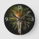 Green and Gold Fireworks Holiday Celebration Round Clock