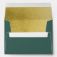 A dark emerald forest green 5x7 envelope with a faux Gold foil Lining Inside. This elegant and sparkly metallic green and gold all purpose envelope is a classy way to send invitations. You can customize and personalize your name and address on the back flap.