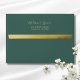 A dark emerald forest green 5x7 envelope with a faux Gold foil Lining Inside. This elegant and sparkly metallic green and gold all purpose envelope is a classy way to send invitations. You can customize and personalize your name and address on the back flap.