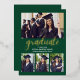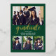 Beautiful 4-photo Graduation Invitation Design with collage, This elegant Green graduation invitation card with gold-plated lyrics and party invitation includes "Graduated" text (year can be customized) in a modern Relieve calligraphy script metaled with a modern four-picture photo collage. The two-sided design of the card includes the writing of the "Let's Celebrate" graduation party and details at the back.
