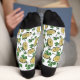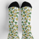 These fun green and white St. Patty's Day socks feature a pattern with hand-drawn Irish gold coins and green shamrocks in black in. The phrase, "Lucky You" is scattered all throughout.