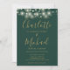 Featuring pretty string lights and signature style names, this elegant wedding invitation can be personalized with your wedding day details in chic gold lettering on an emerald green background with your chosen photo on the reverse. Designed by Thisisnotme©
