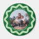 Personalize this circle magnet with your photo and descriptive text to create one of a kind magnet gifts for friends, parents and grandparents. The wavy line bottle cap style squiggle is chic and trendy in pale mint green on a forest green background. Create your own custom magnet by using the blue edit design button to change the colors and fonts to suit your style completely.