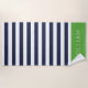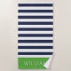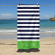 This custom made-to-order beach towel has a preppy horizontal stripe pattern in navy blue, green and white. Personalize it with your name monogram or other custom text in a modern serif font. Use the design tools to choose any background colours, edit the text fonts and colours or upload your own photos to create a custom monogrammed beach towel.