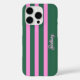 Add a stylish touch to your phone with this green and pink stripes pattern personalized iPhone 16 Pro case. Featuring a chic striped design, it offers a perfect blend of elegance and modern flair. Customize it with your name or initials for a unique look, making it a great accessory or a thoughtful gift.